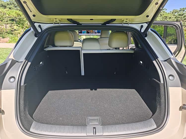 后备厢储物空间也是理想i6的优势项。这次理想i6的后备厢进深达到了1.1米、上层总容积728L,里面也有LED照明灯、烟器供电接口。同时后备厢有两组按键,一组是电动放倒第二排,另一组则是可以控制空气悬挂下降45mm或者上升40mm,增加搬运大件的便利性。