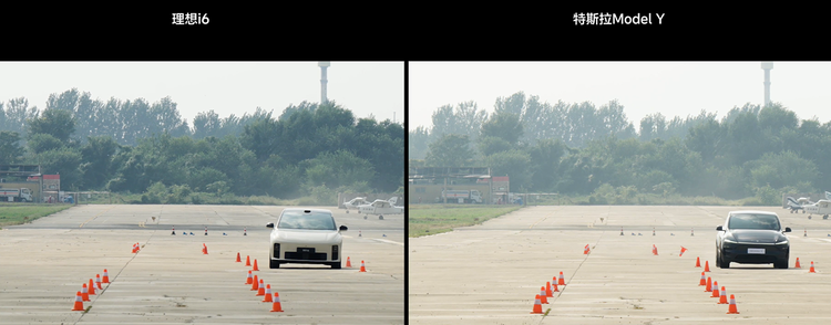比如理想汽车就拿了Model Y做对比,在100km/h高速避让的环节中,Model Y后轴更容易滑动出去,抓地力没有理想i6好。还有一项是飞坡,Model Y落地之后,后轴的跳动次数明显更多,并且每次都很短促,相反理想i6的后轴控制就很得体,悬挂系统基本两次就能控制住车身上下起伏,平稳感更强。