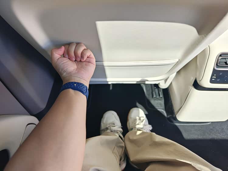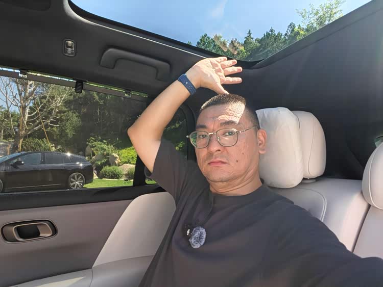 理想i6的3米轴距带来的后排空间也相当有优势。个人体验下来,二排腿部空间有三拳以上空间,大大优于Model Y,和小米YU7比也应该有一拳的优势。而且由于车身高度是1655mm,比竞品都要高一些,再加上天幕一直到第二排头顶,所以头部空间也更有优势,差不多有两拳以上。而且加上更大的二排侧窗面积,坐在后排的通透感也更好,更加敞亮。另外天幕也有全遮光的电动遮阳帘,体验上也非常好。
