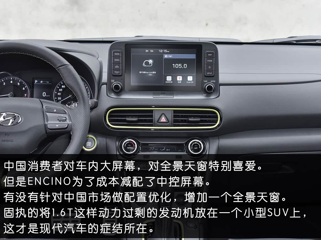 作为一款全球战略车,Kona也即将国产销售,国产后的名字叫做ENCINO(昂希诺)。看了不久前很多媒体对ENCINO(昂希诺)的试驾之后,另我特别失望,因为相比海外版本,很多配置没有了,这些减去的配置,已经偏离了现代研发它的初衷。
