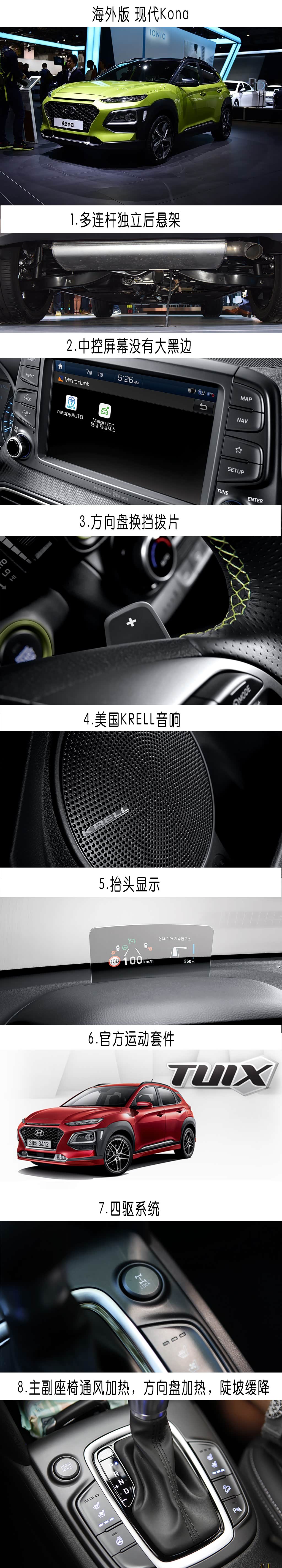 国产变成ENCINO(昂希诺)之后,发生了哪些变化呢?我们先看看海外版Kona都有啥吧。