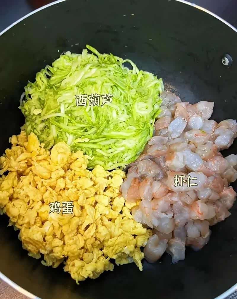 ▲在制作馅料时,要注意挤去西葫芦中的多余水分,以免影响饺子的口感。