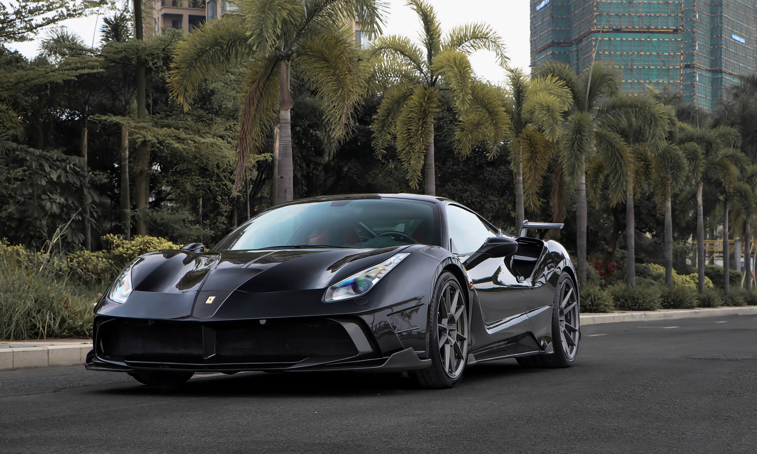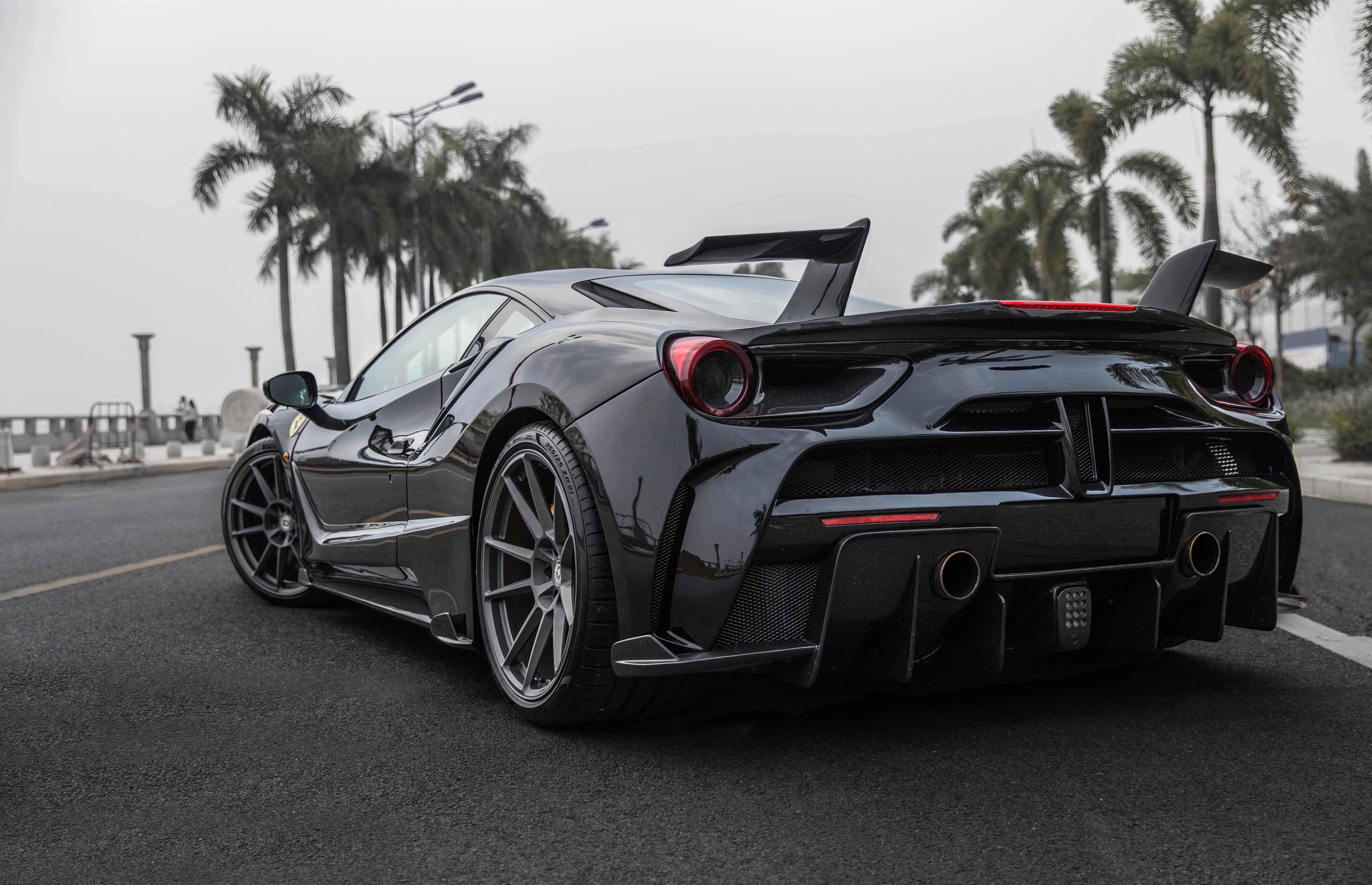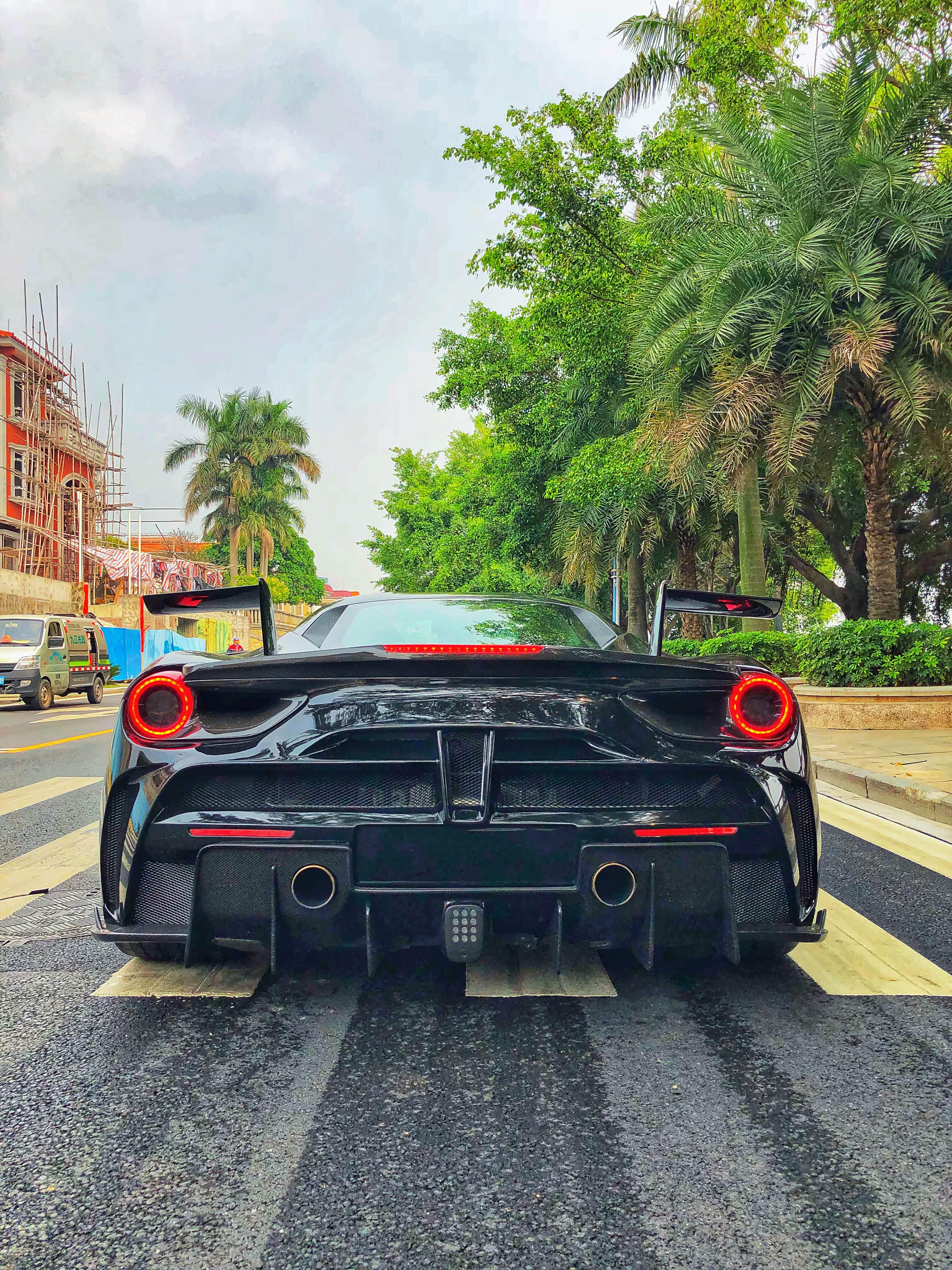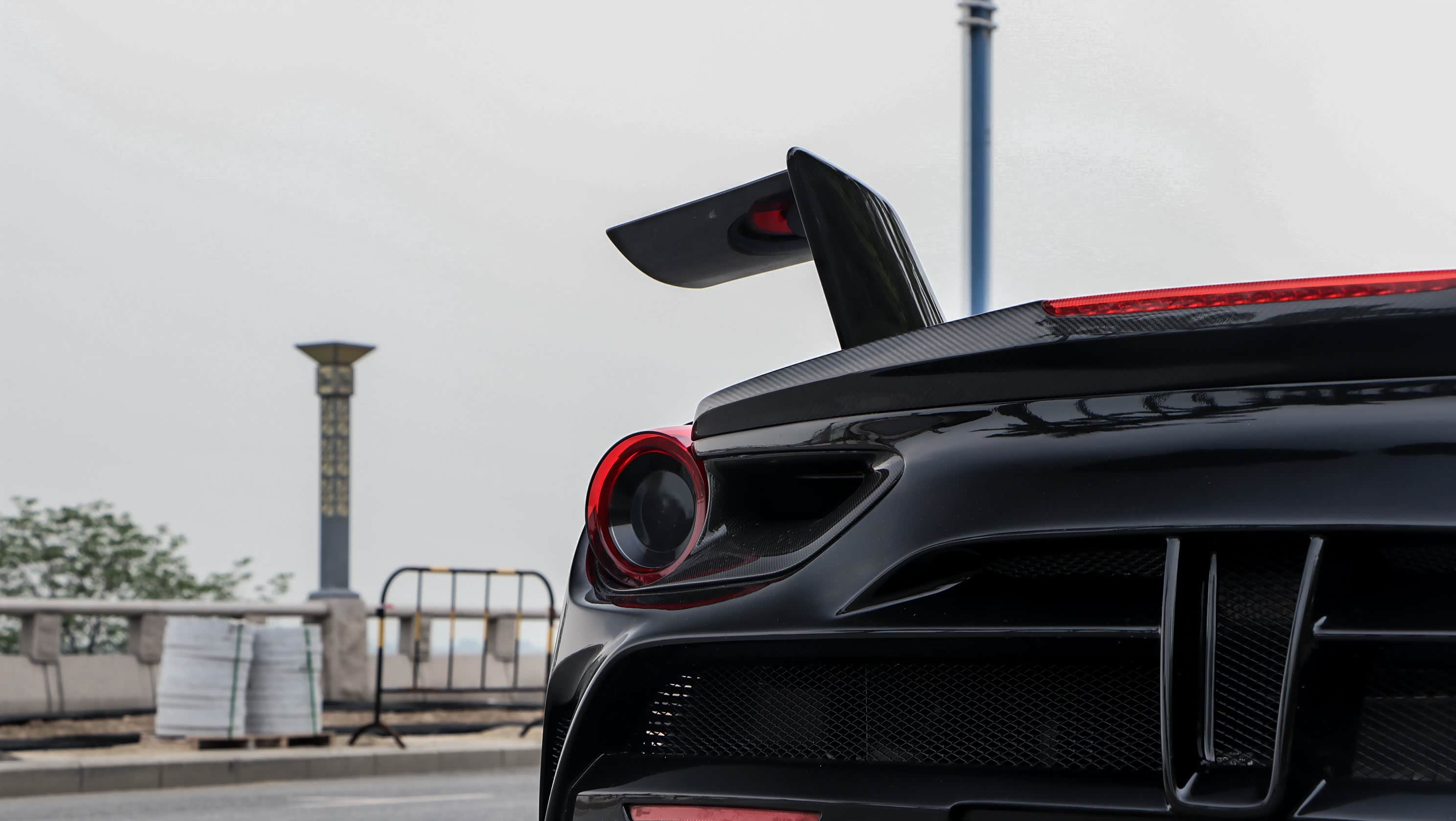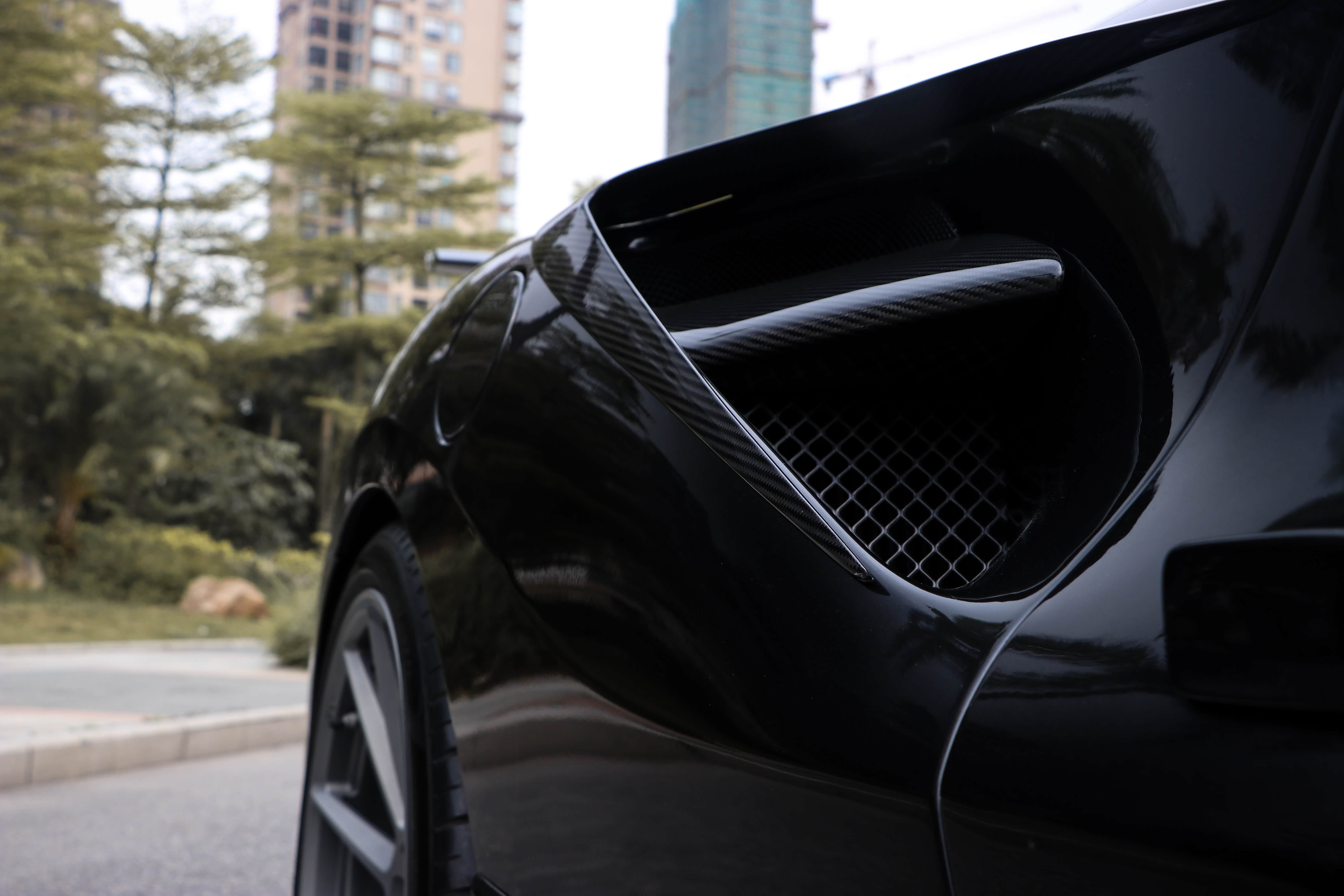 其实对于这种车型来说,在出厂的时候,无论是造型还是动力都能满足大部分玩家的需求了。但是,我们不都是倡导"改装没有贵贱之分嘛" 。就在前几天,我们就去佛山约拍了一辆改装碳纤维定制套件的法拉利488 GTB。在外观方面,这样似乎更有超跑"黑武士"的感觉!