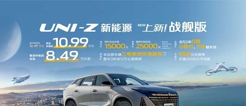 毕竟再好的车,也得先看看自己的钱包能不能承受得起,对吧?长安UNI-Z新能源战舰版现在可是给足了诚意,上新期间提供现金优惠,实际价格只要10.99万元。