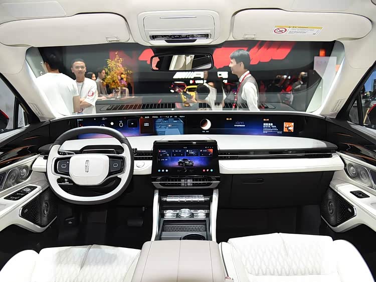 当你走进车内,你会看到一个“T”形的对称座舱布局。中控台由一个23.6英寸的环形联屏和一个11.1英寸的中控屏组成,并配备了高通8155芯片,支持三屏联动和语音分区控制功能。副驾驶的娱乐屏幕能够单独播放视频,并与Revel锐威音响系统(14扬声器)相结合,为用户提供了一种仿佛身处移动影院的沉浸式体验。方向盘的设计是双辐平底的,真皮的包裹处缝有林肯星标的压纹,后方配备了12.3英寸的全液晶仪表,UI设计简单直观。这款座椅是由Savannah半苯胺真皮和Alcantara麂皮混合制成的,主驾驶部分支持24向电动调节功能(包括腿部支撑的延长),并提供了5种不同的按摩方式。后排座椅提供了18°的角度调整功能,地面凸起的高度只有5cm,并且配备了全景天窗,为行政级的后排乘客创造了舒适的空间。