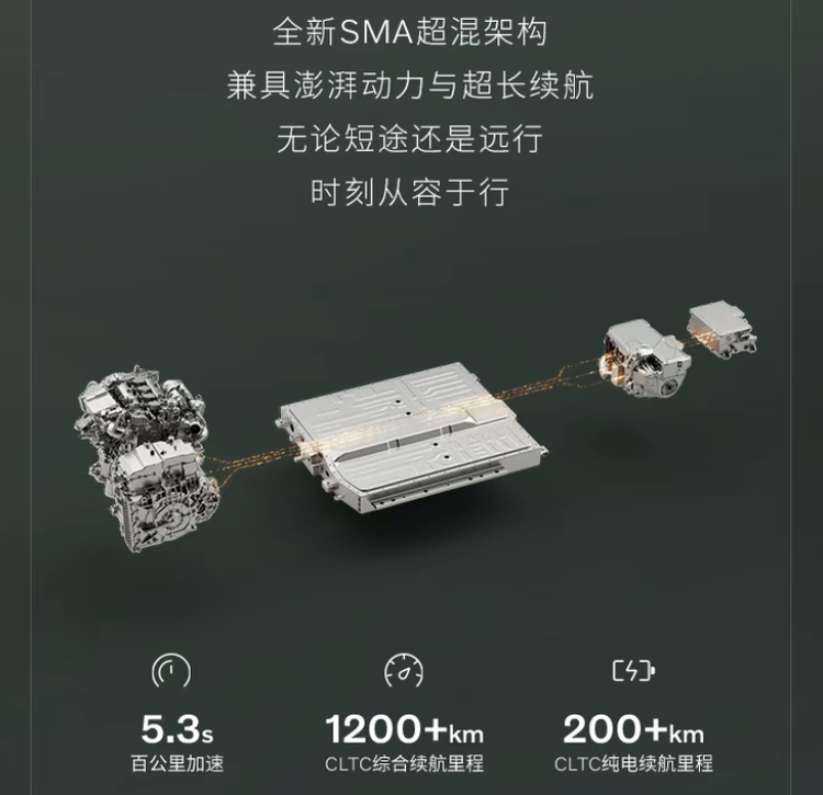 首先,这一次沃尔沃是启用了全新的 SMA 超级混动架构!在这个架构里,P1+P2 双电机+后桥 P4 电机,再匹配 3DHT 变速箱的动力布局,和目前自主品牌的混动车型布局完全不一样。