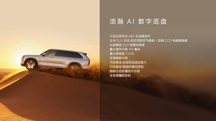 辅助驾驶方面,千里浩瀚H7和H9上车。H7侧重于城市通勤场景,支持无图园区漫游、极充站自主领航和全能泊车等功能;H9则配备双NVIDIA芯片,算力超过1400TOPS,支持更多感知硬件和冗余设计,为后续高阶辅助驾驶功能的落地提供硬件基础。