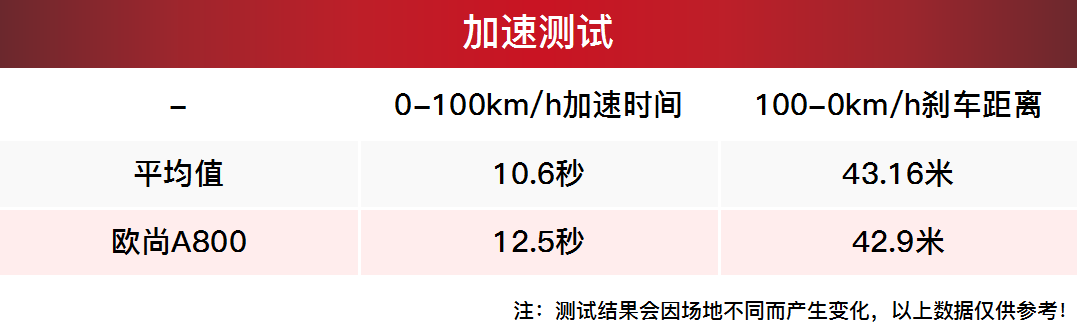 不过由于齿比比较绵密,因此在加速上A800就有些吃亏了,2挡仅能跑到70km/h的速度来,再升上3挡之后才能破百,而3挡的加速度就远不如1/2挡了,因此最终A800的破百成绩为12.5秒,这样的成绩对于这台大家伙来说倒也还算可以。