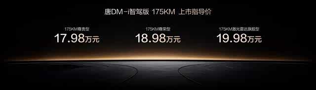 此次,唐DM-i智驾版 175KM长续航版共推出3款车型,售价17.98万~19.98万元(10月31日前完成购车可享10000元置换补贴)。