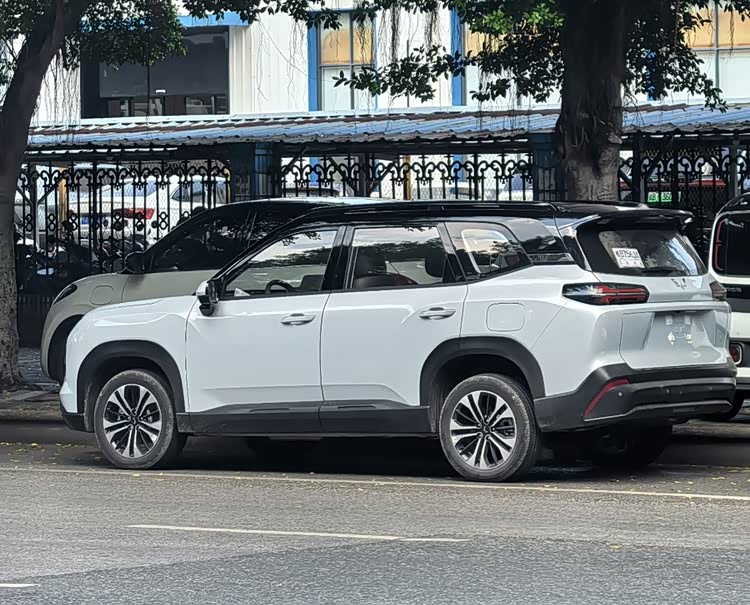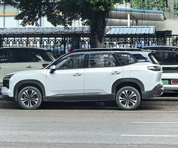 侧面采用双拼色设计,营造出悬浮式车顶的视觉效果,轮廓清晰的腰线加深了侧面的力量感。4745/1850/1755(1770)mm的车身尺寸配2810mm轴距,这个数据在紧凑型SUV里算中等偏上。关键是除了传统5座版本,还提供7座版可选,这对家庭用户来说实用性明显提升。2810mm轴距塞下7个座位,第三排空间不会太局促,应付临时多人出行够用。
