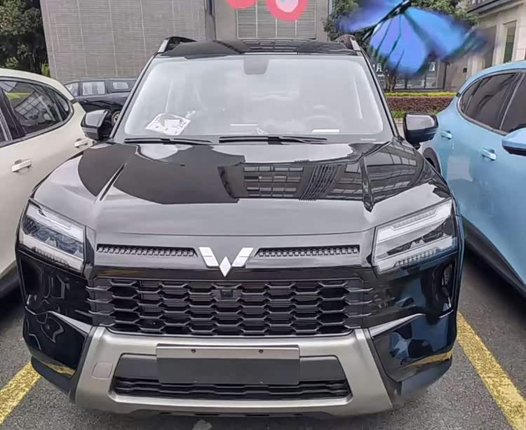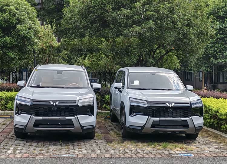 外观用上了五菱最新的设计理念,整体造型硬朗,看着跟之前发布的"宏光侠"概念车挺像。前脸棱角分明,填充了无边界样式的蜂窝格栅,搭配双向并行的头灯和环形银灰色防撞饰板装点的粗壮前包围,硬派气质很明显但不失科技感。这种设计风格比宝骏560时代的柔和造型要激进不少,更符合现在年轻消费者对SUV硬朗感的需求。