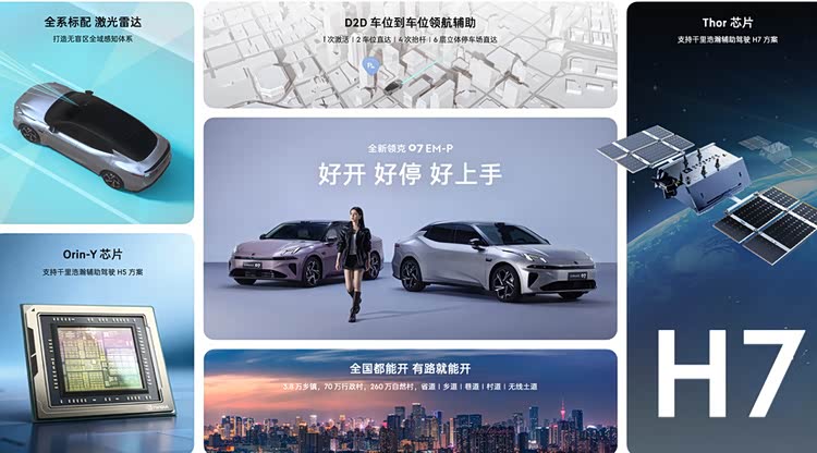 最后进入新款领克07 EM-P升级的重点,新车全系标配激光雷达和双目摄像头,且全系支持无图城市NOA领航驾驶辅助和30余种智能泊车方案。