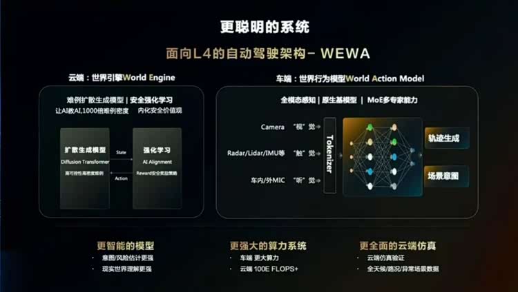 所以,从这个角度出发,理想和小鹏VLA的核心是大语言模型,华为WA的核心是世界模型,这是两条不同的路径。