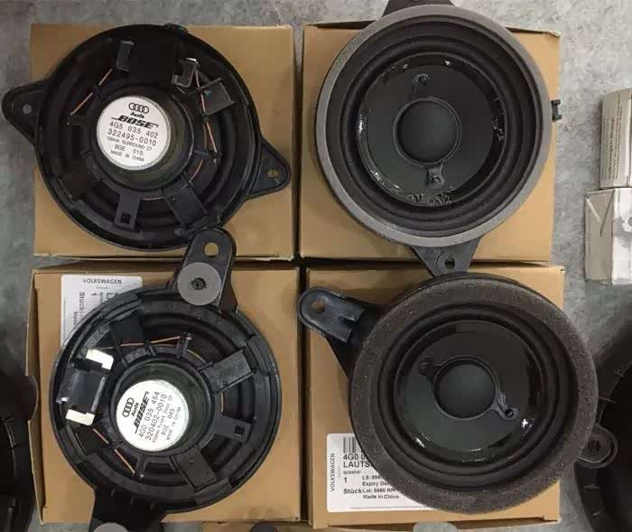 A6L,BOSE音响由大大小小16个喇叭构成,整套配件还包括4个门喇叭盖,2个中控喇叭盖,1个功放及其支架,全车线束构成!