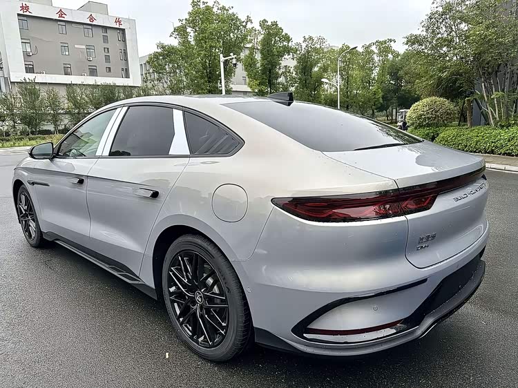 从车身的侧面看,修长而优雅的溜背式设计仍然引人注目,而贯穿式的中国结LED尾灯也得到了保留。值得特别提及的是,加推版车型已经更换了全新的19英寸多幅式熏黑轮毂,并与黑化运动套件相结合,使得整体视觉效果更加出色。除此之外,这款新车还增加了“松影绿”和“雾凇金”两种不同的配色选项,并持续提供未央灰、玄空黑等经典色彩,以充分满足消费者个性化的需求。