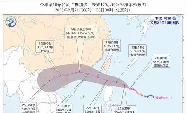 超强台风“桦加沙”来了。这不是普通台风。这是2025年以来西北太平洋的“风王”。中心附近最大风力17级以上(62米/秒)。中心最低气压910百帕。威力惊人。