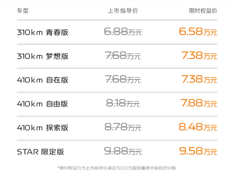 吉利星愿有着亮眼的销量表现,此次新款加量不加价,进一步提升其竞争力,和同级对手相比,它在外观设计和配置上优势明显,并且后驱、独立悬架的底盘素质,加上6.88万的起售价,具备明显的优势。如果你对该车型感兴趣,预算充足的可以直接上次顶配的410km探索版,有6安全气囊和L2级辅助驾驶,预算有限且只是想买一台代步小车,那入门的310km青春版也可以考虑。
