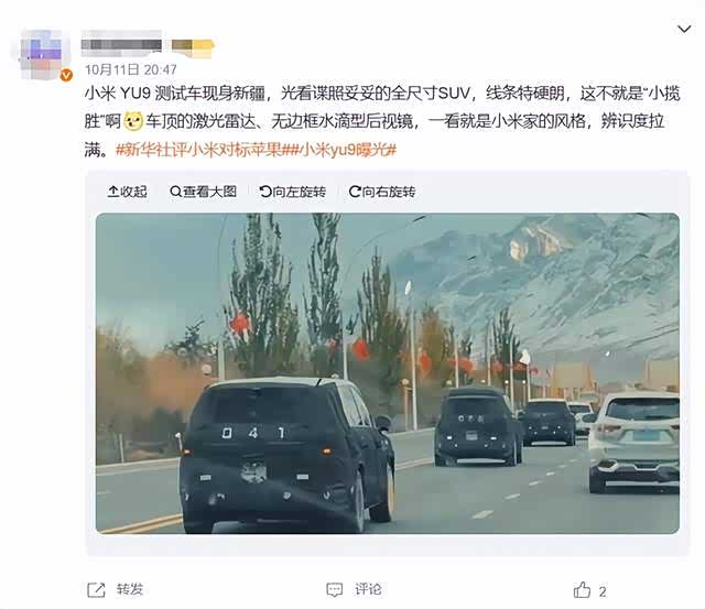 这一配置与小米SU7、YU7发布前的高管督测惯例高度一致,暗示YU9已进入研发后期,或于2026年正式亮相。