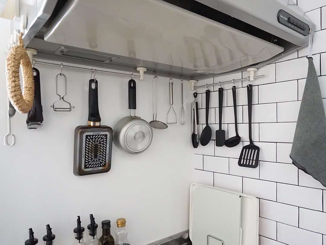 妙招一:墙面变“收纳墙”,锅铲调料都上墙