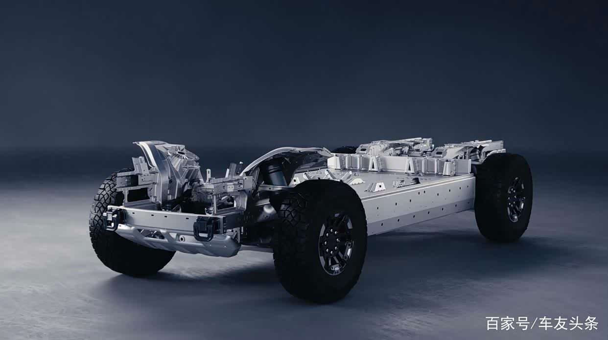 夸张的自重并不会在实际驾驶中表现出来,一是因为工程师将电池包放置于车底,尽可能地降低了车辆重心。更为重要的则是因为悍马EV采用了全新的车架结构。这种被称为车身框架一体化平台的结构是一种类似“三明治车身”的全新结构。它使得位于车辆底盘位置的电池包也变成了车架结构的一部分,电池包两侧则由结实的横梁与护板提供保护。