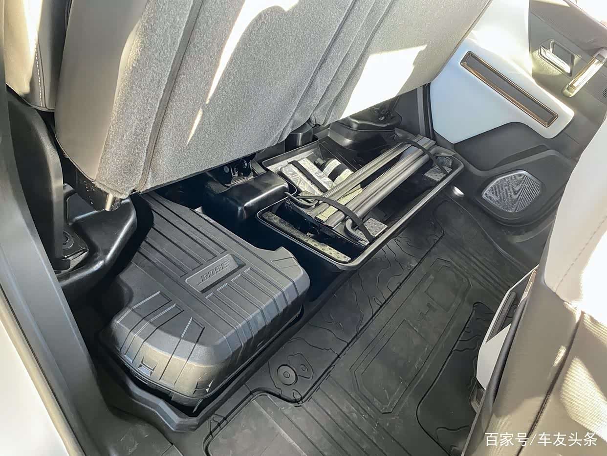 储物空间方面,悍马EV还是基本做到位了的,除了常见的储物格,你还能在后排地板等非常规的位置找到储物空间。可拆卸的车顶也能找到专属的存放位置。
