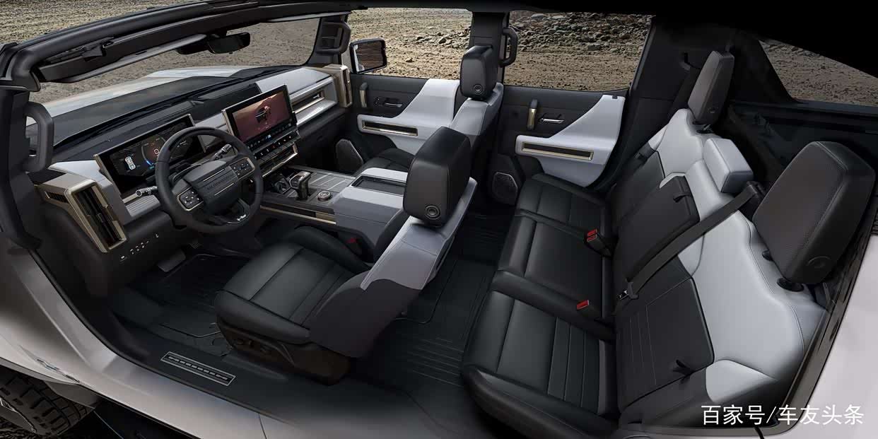 超过5.5米的车长和2.2米的车宽并没有给悍马EV的车内乘员带来超越同级的乘坐空间,与通用旗下的主流燃油车型相比,使用纯电平台的悍马EV为了容纳电池包,后排坐姿会更高。