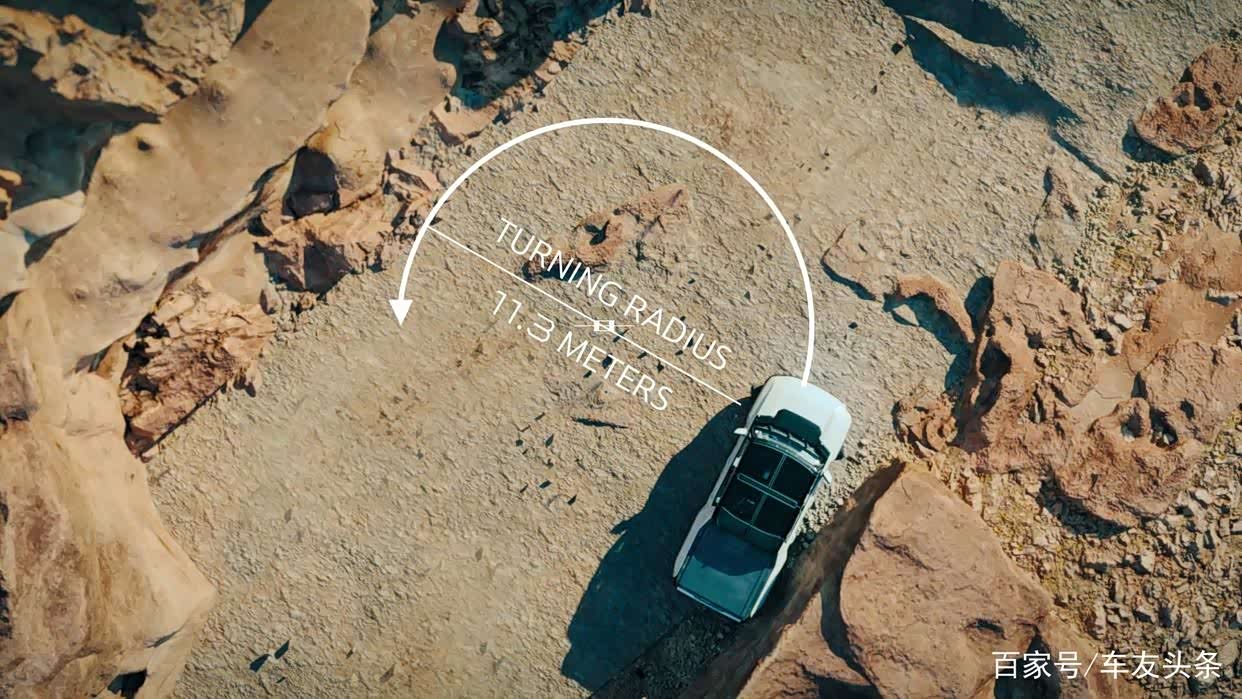 虽然尺寸与它的前辈差不多,但悍马EV却拥有仅5米左右的转向半径,这对于其在野外环境下的穿越能力大有帮助,而这背后的功臣是其采用的后轮转向系统。低速掉头时,后轮与前轮的转动方向相反,并且后轮最大转向角度达到了10度。这种设定还让悍马EV拥有了可以横着走的“蟹行模式”。
