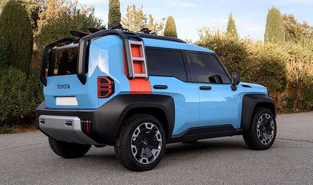 车身侧面新车的整体造型还是非常硬派的,一条硬朗的腰线贯穿前后,B/C柱、车窗装饰条以及后视镜均采用了熏黑处理,而且在黑色车顶的点缀下还展现出了一种悬浮式车顶的视觉效果,在保证野性的同时进一步提升了新车的时尚气息。前后黑色轮眉造型硬朗突出,搭配下方大尺寸的越野轮胎都非常符合硬派越野SUV的形象。车身尺寸方面预计新车为4410*1855*1870mm,轴距为2580mm,相比Corolla Cross以及Yaris Cross更小,当然了小巧的车身尺寸的不仅能够提升越野性能,而且在城市里驾驶也更加方便快捷。