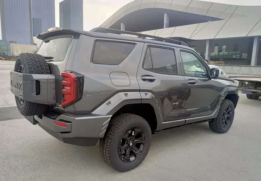 车身侧面坦克400 Hi4-T运用了大量的硬朗线条,将机甲风格展现的淋漓尽致,较短的腰线还运用了折角设计,并与下方侧裙处的硬朗线条相连,前后轮眉处造型硬朗有力,同时还有铆钉装饰,下方大尺寸的多幅式轮圈与轮眉之间的有着较大的距离,完全能够适合更加复杂的路况。车身尺寸方面,新车为4985*1960*1905mm,轴距为2850mm,同时新车接近角更是达到了33度,离去角30度,最小离地间隙224mm,涉水深度达到了800mm。