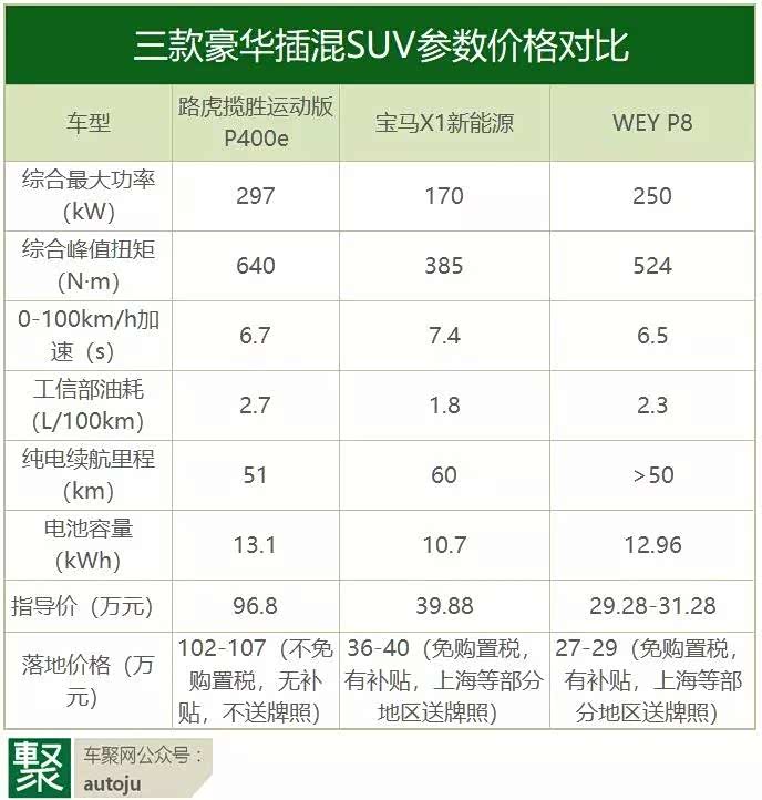 看到小标题,大家或许觉得车聚君脑子瓦特了。路虎可是SUV中的“劳斯莱斯”,运动出身的宝马也是主流的豪华品牌,它们和WEY P8不是一个级别的啊?
