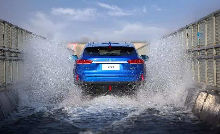 从数据来看,WEY P8的最小离地间隙180mm,接近角20度,离去角25度,最大涉水深度500mm。虽然与揽运P400e还有一定差距,但已经相当不俗了。