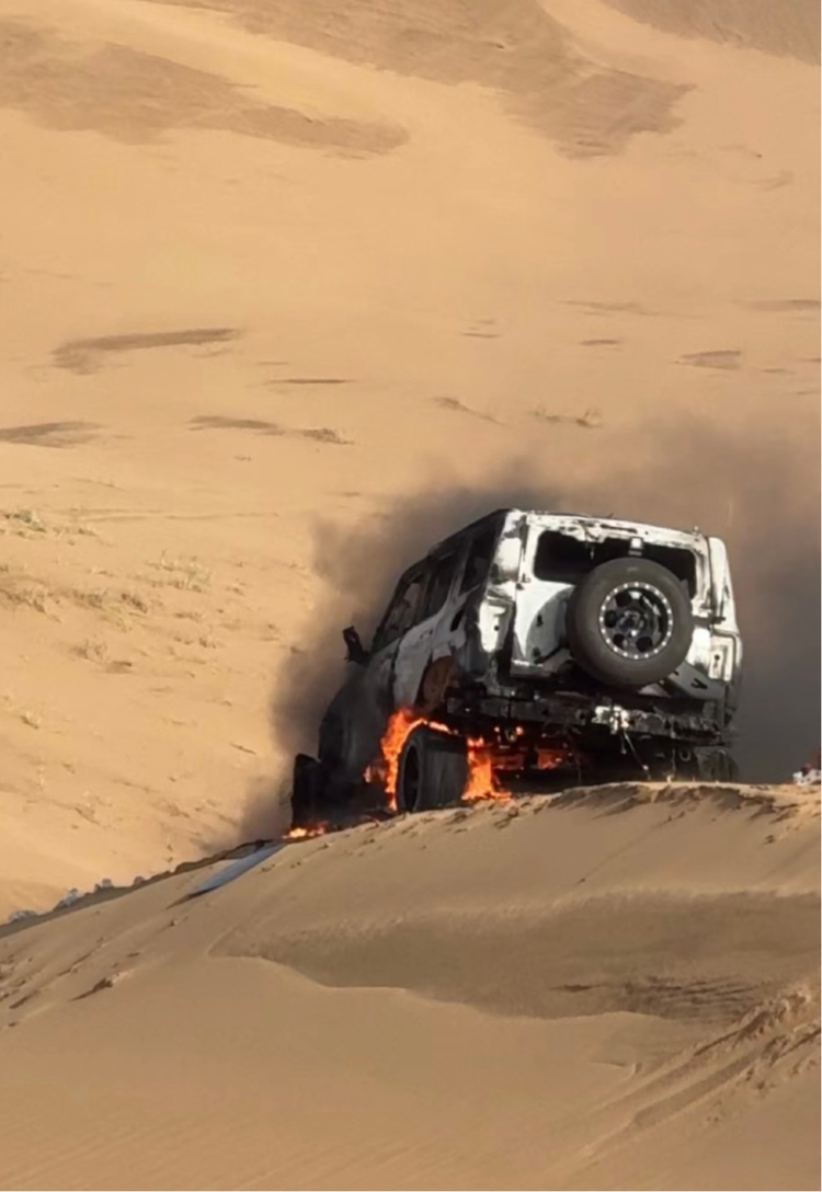 更早的2022年一辆 坦克300(参数|询价)在内蒙古乌兰布和沙漠越野时发生自燃,车辆在短时间内被烧成车架。彼时,根据现场目击者表示,该坦克300在沙漠越野过程中突然起火,最终仅剩车架残留,庆幸的是并未造成人员伤亡。