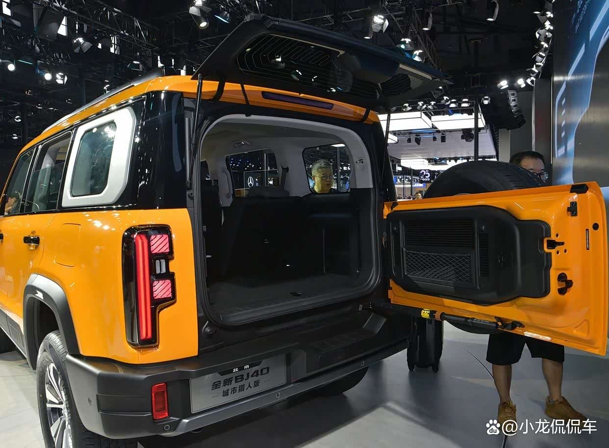 车身尺寸方面,全新北京BJ40的长宽高为4790*1940*1895(1929)mm,轴距为2760mm,定位于紧凑型SUV。新款车型的车身尺寸与老款相比有明显地加长,并且与坦克300等竞品车型相比还有一定的优势。由于车身尺寸加长了,所以全新北京BJ40车内的空间是更为宽敞的,并且全新北京BJ40的尾门还采用了上半部上下开,下半部侧开的设计,这样的尾门开启方式不但看起来个性,同时也会更为实用一些。