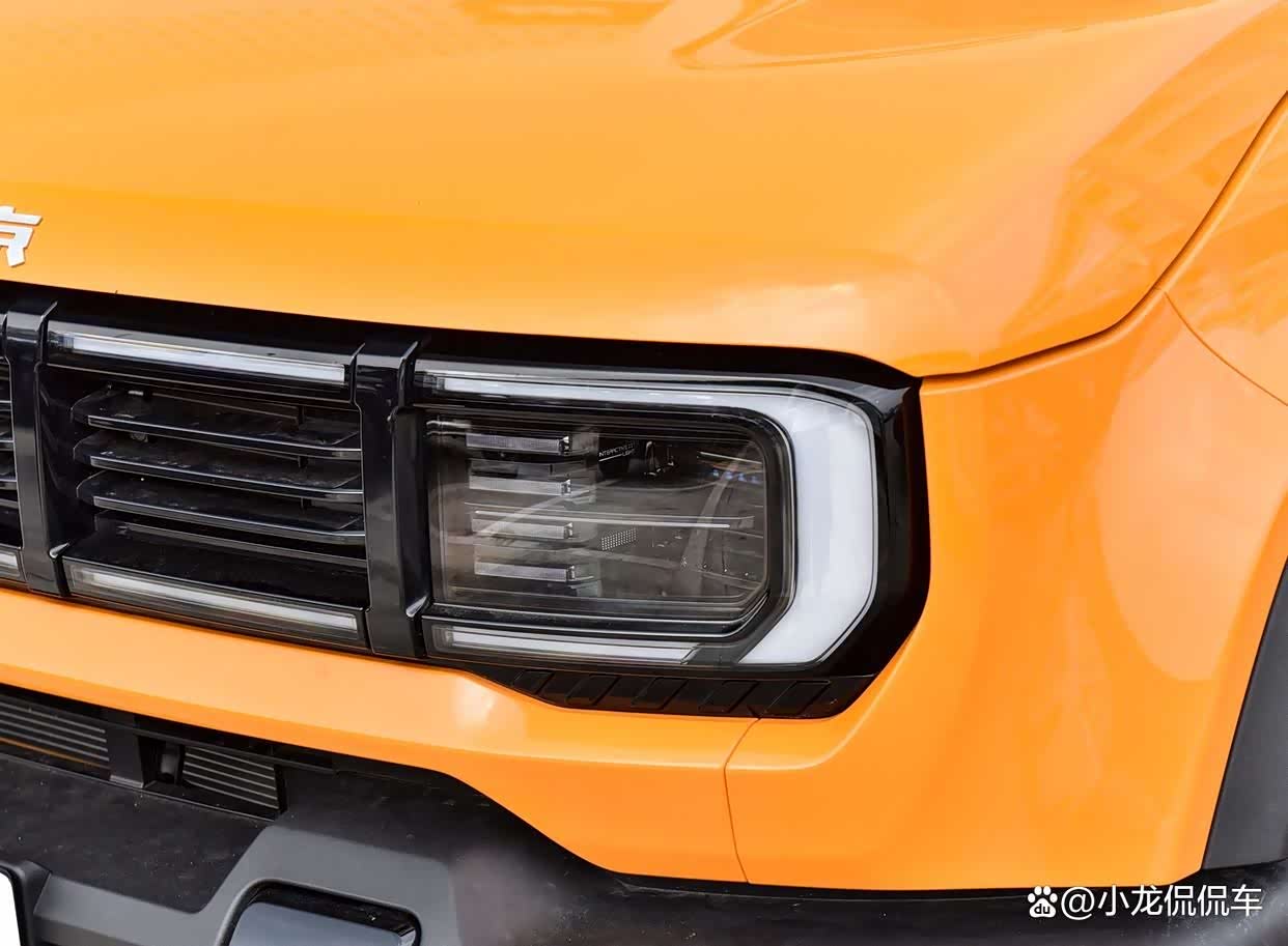 除了价格变化以外,全新北京BJ40的外观内饰也是经过了重新设计了。首先在外观设计方面,全新北京BJ40整体的造型与老款车型硬朗粗犷的外观相比还多了一些时尚精致感,这点是比较好的,毕竟外观变得时尚精致后受众面也会更广了。车头部分,新车采用了与大灯组融为一体的进气格栅设计,所以车头的整体感会呈现得更足;此外,新车还采用了贯穿式的LED日行灯设计,这个设计则凸显了车头的时尚科技感。车身侧面,全新北京BJ40的设计较为简洁,不过在硬朗的线条勾勒下,整个车侧看起来还是十分硬朗的。车尾部分,全新北京BJ40依然采用了后挂备胎和侧开尾门这两个越野车常用的设计,能够凸显车尾的“野性”。