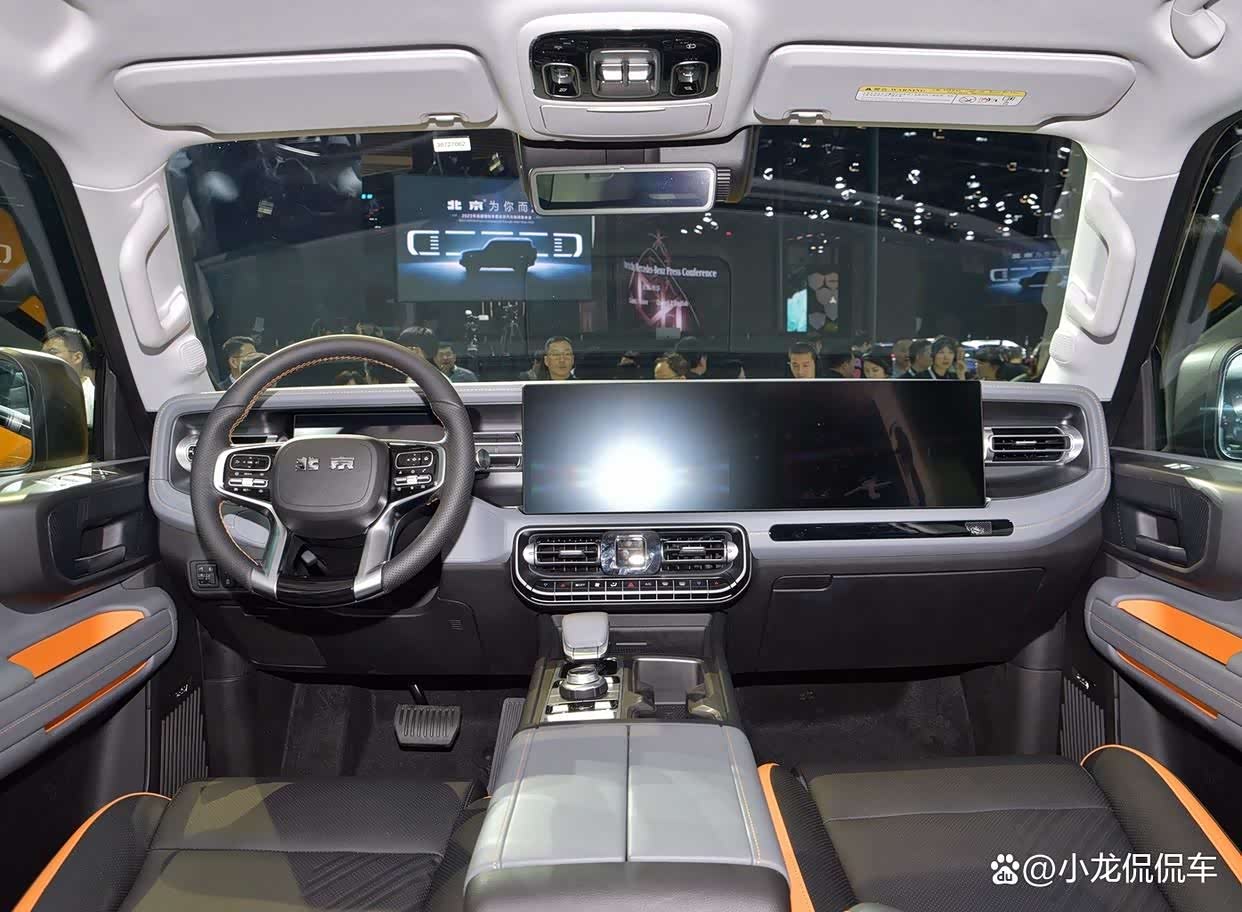 打开车门会发现,全新北京BJ40的车门竟然采用了无边框的设计,这个设计在越野车上却是比较罕见,毕竟越野车考虑得更多的是车身扭转刚性等问题,而全新北京BJ40采用了无边框车门可能对于年轻人的吸引力会是更大的。内饰方面,全新北京BJ40的整个内饰也经过了重新设计,新车不但配备了全液晶仪表,为且还将中控大屏和副驾娱乐屏采用了双联屏设计,配合电子挡把让整个内饰看起来科技感十足。配置方面,全新北京BJ40标配了4气囊、胎压显示、ESP、防侧翻系统、多种驾驶模式切换、中央差速锁、低速四驱、蠕行模式、倒车雷达、360度全景影像、透明底盘、无边框车门、无钥匙进入、无钥匙启动、远程启动、LED大灯、自动头灯、感应雨刮、12.8英寸中控大屏、12.8英寸副驾娱乐屏、电调座椅、先锋音响、自动分区空调、后座空调出风口等。