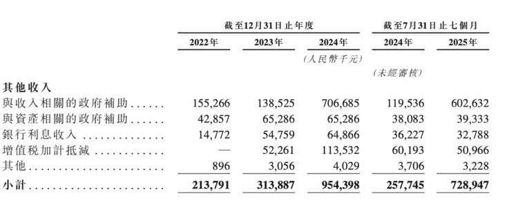 招股书显示,2025年1-7月,岚图汽车“与收入相关的政府补助”从去年同期的1.20亿元大幅提高至6.03亿元,增幅高达404.13%。