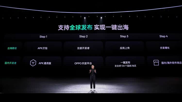 此外,OPPO开放平台为全球开发者提供更方便的海外增长通道,支持“一键出海”,帮助开发者将应用直达OPPO应用服务所覆盖的108个国家或地区,无需重复打包或多次上传,真正实现“开发一次,全球发布”。