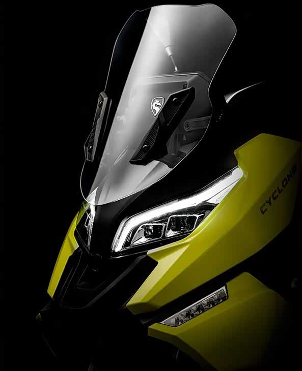外观方面,荣250是由欧洲团队亲自操刀设计,整车营造出运动踏板那种线条战斗感;尤其前脸采用了菱形覆盖件包裹着那对矩阵式大灯,加上回形刀式的示宽灯映衬下,前脸看起来既有一定的神秘感,也散发出运动气息。