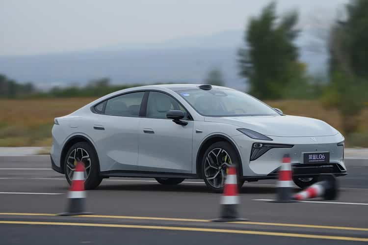 二就是在日常驾驶的时候,不容易晕车且高速通过沟沟坎坎以及飞坡路段向下起伏很小,坑洼路段的颠簸过滤的比较不错。结合日常用车高危痛点就是比如我们在高速通过不平路面,或者飞坡路面的情况下,高速落地结果遇到了需要紧急避险的情况,很多车可能很难做到快速避让,这台深蓝L06就能够很好的完成避险。