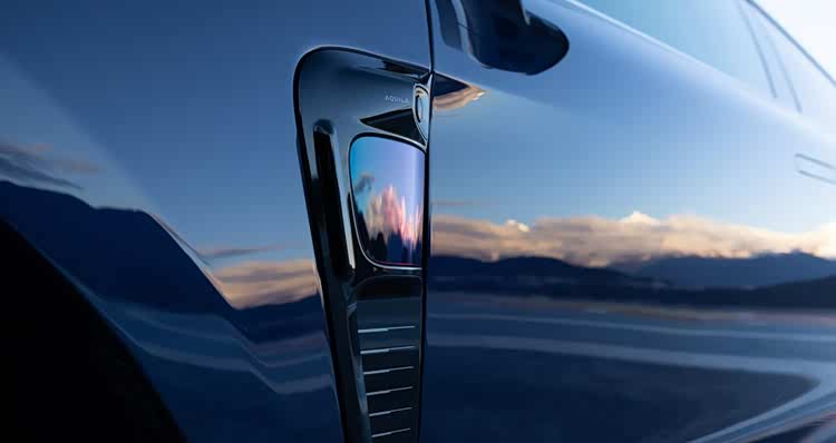 它的飞航设计确实挺有气势感,配上5米3的车长、超过2米的车宽和1米6的车高,走在路上你能感受到它的“贵”。尤其是拱起的后背,这是超豪华品牌凸显尊贵感惯用的设计手法。