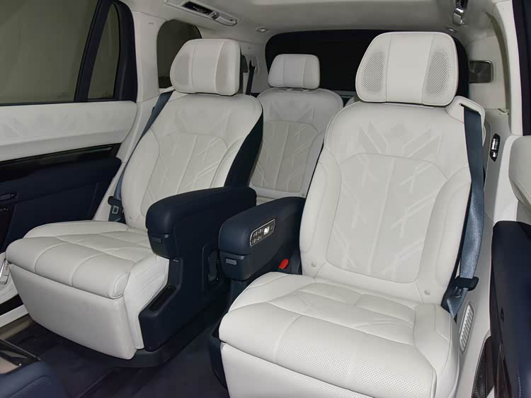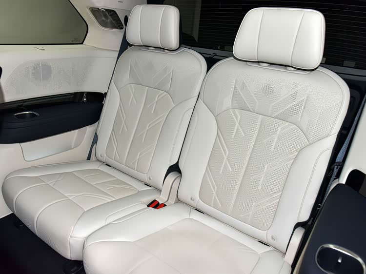 第二排行云座椅的坐垫宽度超过53厘米,拥有12层结构和10毫米梦幻回弹海绵。支持四种模式:零重力座椅模式参考NASA标准,躺角达145度,坐垫上翘23度;伊姆斯躺椅模式提供10区支撑,帮助身体达到放松状态;旋转座椅模式可将二排座椅180度旋转,与三排形成对坐;专业按摩椅模式具备22个点位、8种按摩手法,缓解长途疲劳。第三排座椅同样舒适,提供至高135度躺倒角度和140毫米电动滑移行程,标配加热功能,带来宽裕舒适的乘坐体验。