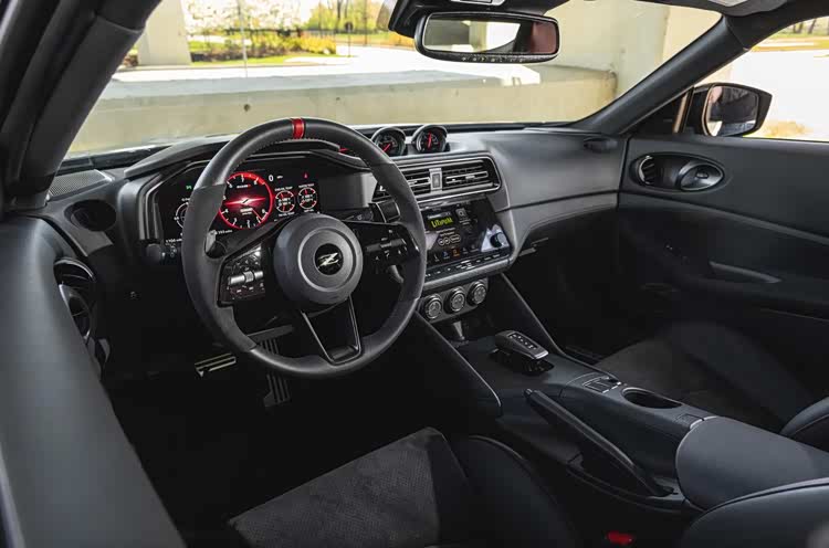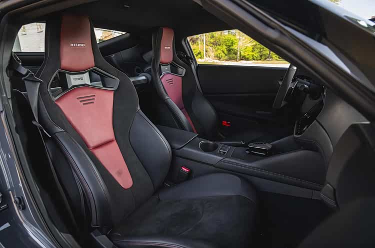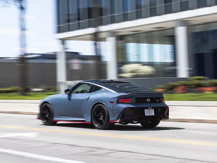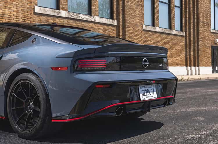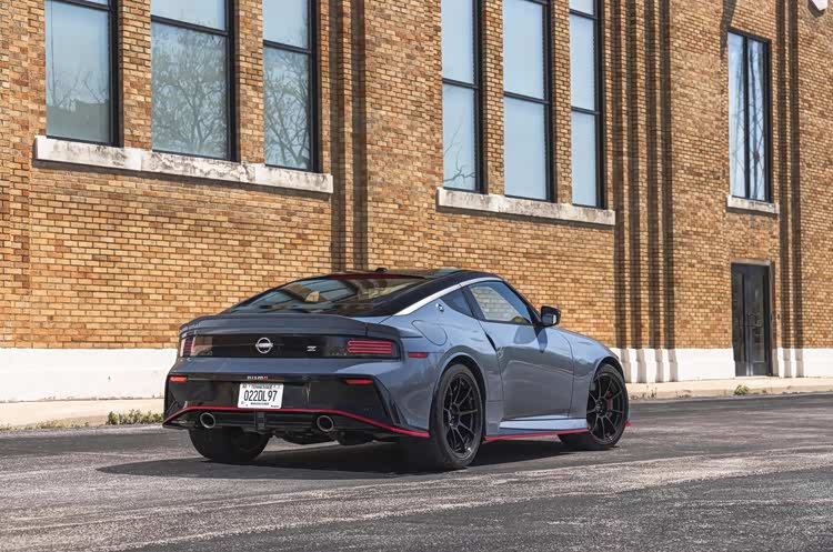 外观设计相比普通版日产Z有明显差异。前中网造型更宽但扁平化处理,上沿增加配有"nismo"字样的专属扰流板。整车包围配备红色线条装饰,车尾增加"nismo"字样标识。这些外观套件在视觉上强化性能属性,同时部分空气动力学套件能够增加下压力,提升高速稳定性。