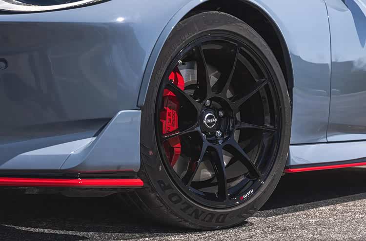底盘和制动配置方面,日产Z Nismo配备专属Rays 19英寸锻造轮辋,轮胎采用邓禄普SP Sport Maxx GT600s系列,规格为285/35 R19。Rays是日本知名锻造轮辋品牌,在赛车领域应用广泛,锻造工艺相比铸造轮辋重量更轻强度更高。制动系统配备Akebono高性能卡钳,该品牌为多款性能车和赛车提供制动系统。