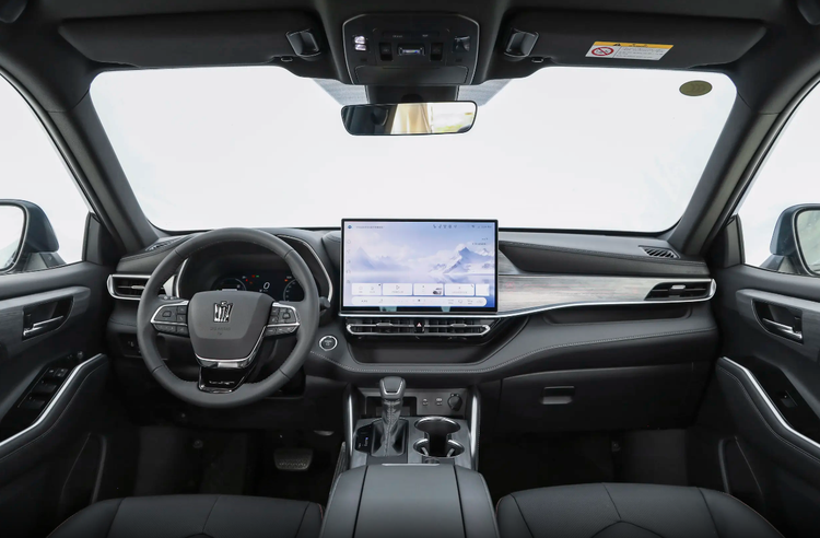 车辆的外观设计继承了家族化的设计理念,黑色的蜂窝状中网与棱角分明的LED前大灯组相结合,形成了既有力量感又具有时尚感的前脸设计。前部的设计结合了梯形的进气口和镀铬的装饰条,这增强了车辆前端的视觉宽度感。车身的侧面设计采用了贯穿式腰线和20英寸多辐式轮毂(235/55 R20轮胎)的组合,从而创造出一种修长而稳定的侧面姿态。5015mm的车身长度与2850mm的轴距之间的理想比例,不仅为乘客提供了宽敞的7个座位,还通过短的前后悬设计增强了驾驶的灵活性。车辆的尾部设计采用了分层的灯组和双边共两出的排气方式,与1750mm的车身高度相匹配,充分展示了中型SUV应有的稳定和稳重特质。