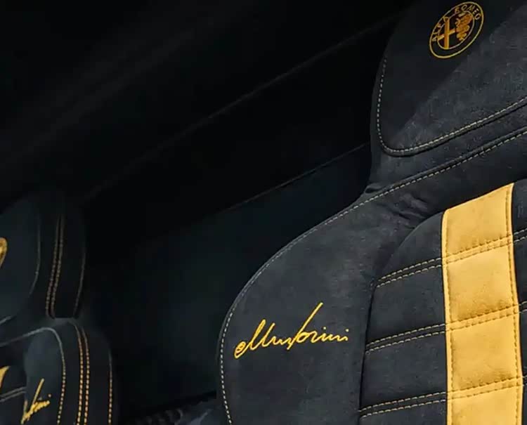 外观采用致敬70年代Giulia GT的配色,提供松绿、plum红、赭黄三种独特色调,前后包围以白色点缀形成鲜明对比。车身延续碳纤维单体座舱结构,前翼子板嵌四叶草标识,搭配18英寸哑金色十辐轮圈,车尾圆形尾灯与中置双出排气强化运动基因。