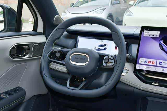 内饰设计部分,2026款领克06 Relive中控台区域搭载了三幅式平底方向盘、10.2英寸液晶仪表、14.6英寸悬浮式中控屏。