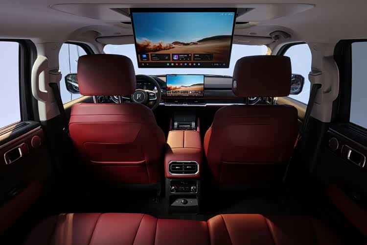 设计层面,全新坦克400坚守原创机甲美学,棱角分明的线条与赛博朋克风格灯组勾勒出强烈的力量感,成为“一眼即识”的视觉符号。此次预售车型新增“敦煌紫”车身配色,配合重新设计的黑色网格前包围与“GWM”字样尾标,在保留硬派气质的同时更添潮酷细节,尾部取消外挂式备胎围挡后,视觉呈现更为简洁利落。座舱内,12.3英寸全液晶仪表与15.6英寸悬浮式中控屏形成双屏交互,怀挡式换挡机构优化了操作便捷性,搭配Nappa真皮座椅、后排吸顶屏及车载冰箱等配置,将科技感与舒适性自然融合。
