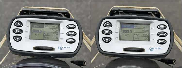 当然也有表现不足的地方,在高速行驶状态可以清晰的感受到风挡的保护效果甚微,高速需求多的车友建议更换大一点的风挡。同时没有快排的加持,个人感觉缺点什么,以及原车档位过轻,加速时1升2档有时会打进空挡,需要注意下。制动测试原厂配备西户直推上泵,前双碟Brembo卡钳,后双活塞卡钳,配置上都是顶尖大牌,数据实测60-0的最好成绩为16.3m,30-0为4.3m,这个成绩在测评过的诸多中大排骑士车中属于良好水准,感觉调校上未能充分发挥这套刹车配置的性能,ABS介入时机合适,且弹手感不明显。