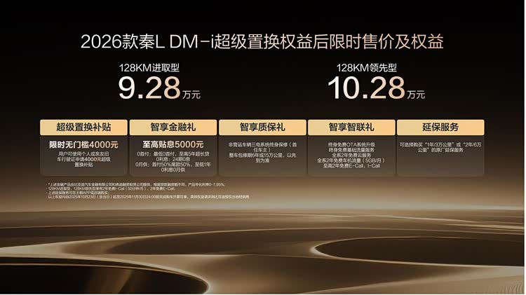 2026款比亚迪秦L DM-i上市,置换价9.28万元起