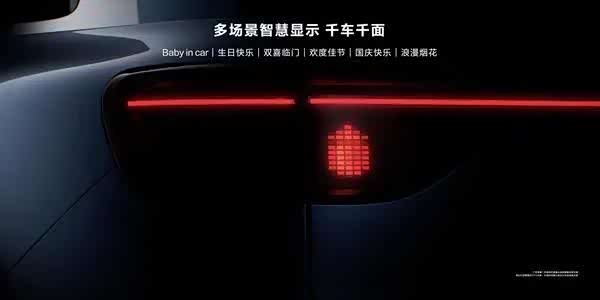 星河尾灯也并非只是单纯的照明工具。通过自定义灯语功能,其灯光矩阵能够呈现出如生日快乐、双喜临门、烂漫烟花等多种灯光形式。这一设计既充分考虑了用户的诉求,增强了车与用户之间的互动性,同时也借助智能化手段提升了车辆的科技质感。
